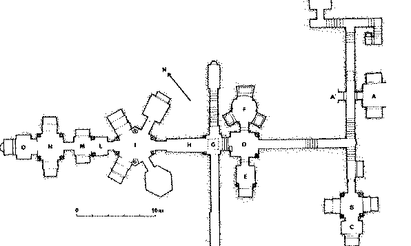 Roma, pianta della catacomba in Via Latina. Si può notare che i vani più spaziosi hanno una larghezza massima di 2 metri e mezzo: al massimo dieci persone contemporaneamente possono occuparli.