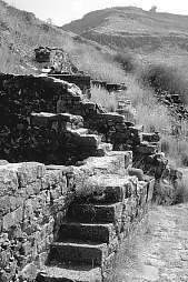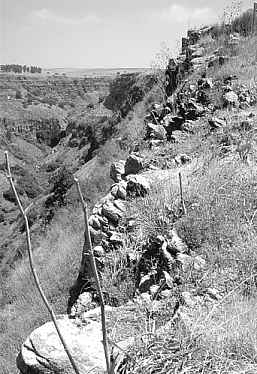 A questo punto non possiamo fare a meno di ricordare la famosa frase in cui Gesù dice: "...non può restare nascosta una città collocata sopra un monte..." (Mt V, 14) facendo venire in mente, per un'altra volta, Gamala. Su questo fatto mi è stato segnalato, dal dr. Pietro Le Mura, della Stanford University (California - USA), un particolare molto importante: infatti lo studioso mi ha inviato un e-mail in cui si fa notare che il Vangelo di Tomaso (uno scritto gnostico, considerato apocrifo dalla Chiesa e fatto scomparire fin dai primi secoli, finché il caso non ha voluto farlo tornare alla luce in questo secolo a Nag Hammadi, in Egitto) ai versi 31 e 32 recita quanto segue: "...Gesù disse, "Nessun profeta è benvenuto nel proprio circondario; i dottori non curano i loro conoscenti... una città costruita su un'alta collina e fortificata non può essere presa, né nascosta"...". Parole di questo genere sono presenti già nei Vangeli di Matteo e Marco; è il famoso brano "...nemo profeta in patria...", che tutti conoscono, nel quale si parla della città di residenza di Gesù. Ora, è estremamente significativo il fatto che, in associazione a quel brano, il Vangelo di Tomaso aggiunga la frase relativa alla "città costruita su un'alta collina e fortificata". Anche nei Vangeli canonici è presente una frase simile: "...non può restare nascosta una città collocata sopra un monte..." ma, coerentemente con l'intento censorio di cui abbiamo parlato, sono state operate due modifiche dagli autori del testo: 1 - questa frase è stata allontanata dal brano che parla della città di Gesù, affinché non ci sia alcun riferimento; 2 - è stato tolto l'aggettivo "fortificata", dal momento che parlare di una città fortificata e costruita su un'alta collina avrebbe costituito un richiamo fin troppo esplicito alla famosa Gamla che era stata espugnata da Vespasiano durante la tremenda guerra degli anni 66/70. Aggiunge il dr. Le Mura, dalla California: "...Interessante, no? La mia ipotesi e' che [il Vangelo di Tomaso] stia appunto parlando di Gamla...". ![]() Gamala, o Gamla [Foto Donnini, luglio 1997] Dalla GUERRA GIUDAICA di Giuseppe Flavio (Libro IV)