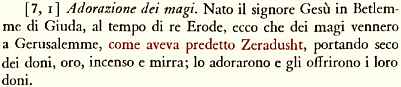 Infatti č nominato Zarathustra (Zeradusht), il quale avrebbe predetto la nascita del messia annunciata da un evento astronomico (la stella). |